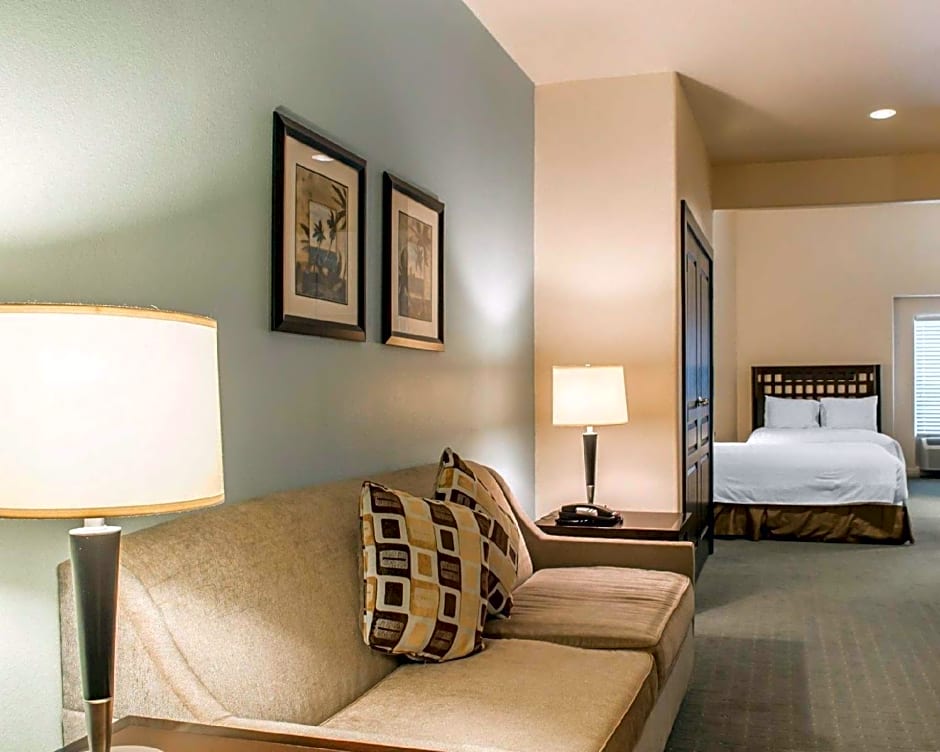 Featuring a kitchenette, this room offers a separate seating area with sofa bed and work desk.
